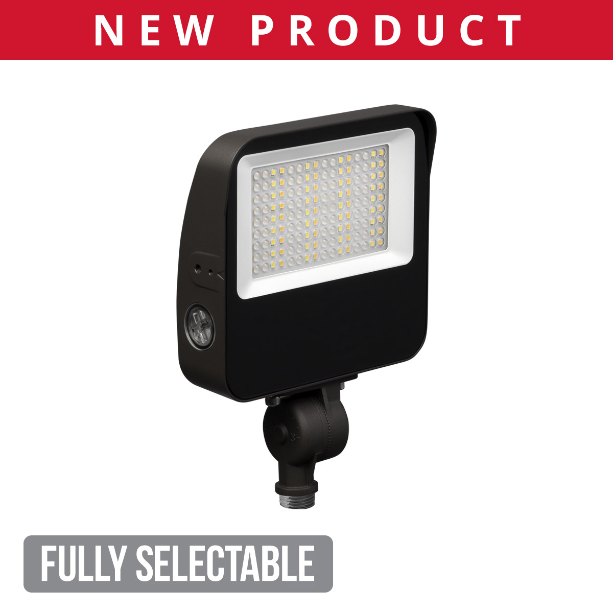 Go anywhere and do anything with the Fully Selectable Flood Lights! These high-performance fixtures are fully customizable, which reduces stocking complexity and provides additional flexibility for contractors. Multiple mounting options are included in the box and they feature user-selectable lumens, color temperature, distribution, and photocontrol.